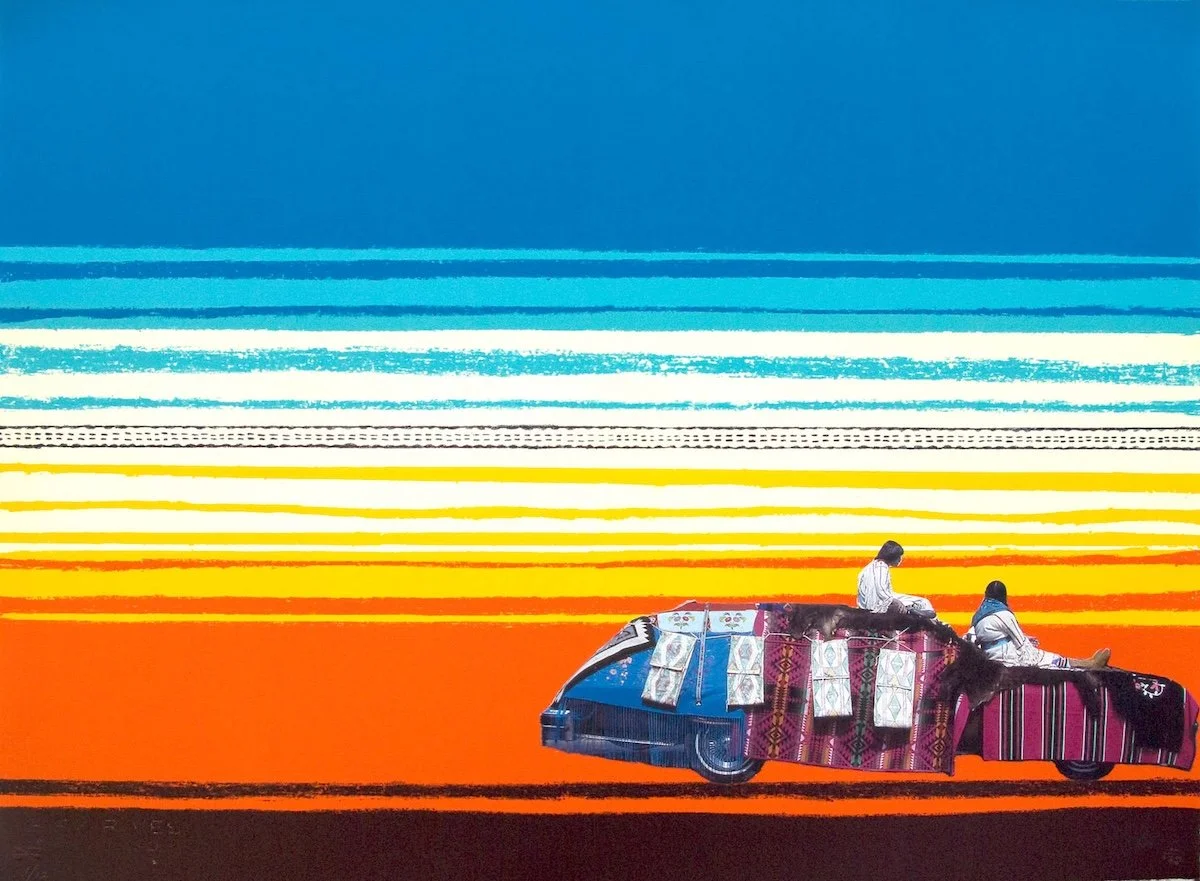Six-color lithograph on Somerset Satin white, with archival pigment printed chine collé on mulberry paper