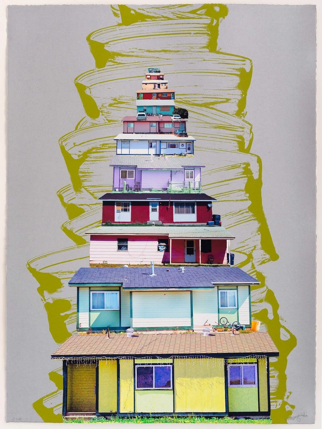 Nine-color lithograph with chine-collé archival pigment ink photographs